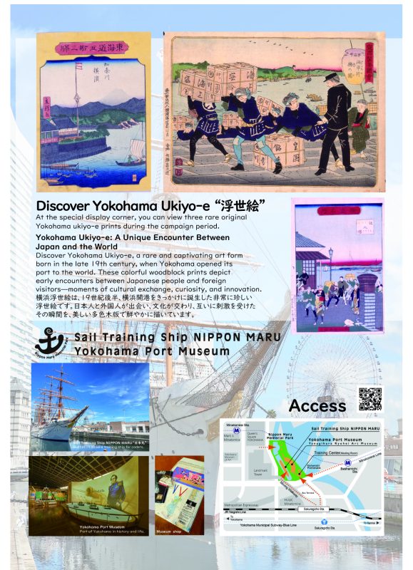 To help our overseas guests fully enjoy the charm of Yokohama, we are hosting a special limited-time display of three rare Yokohama Ukiyo-e prints during the campaign period.