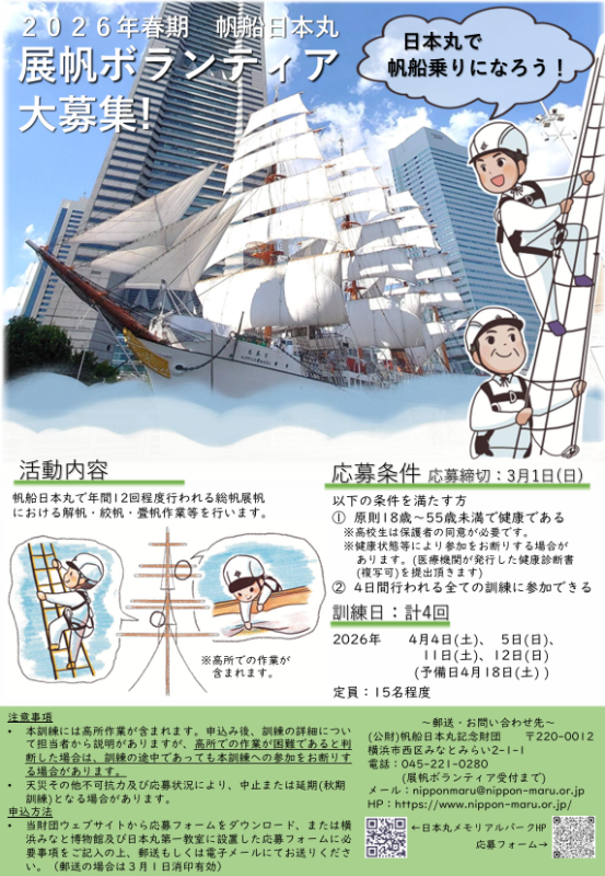 帆船日本丸記念財団 指導部「展帆ボランティア受付」係